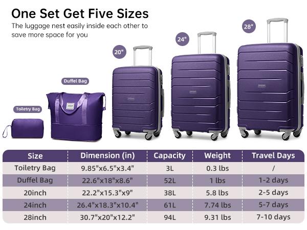Luggage Sets 5 Piece, Expandable Luggage Hardside PP Suitcase Sets with Spinner Wheels TSA Lock, Lightweight suitcasess