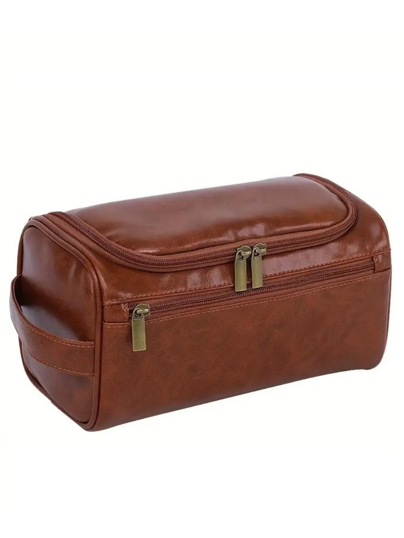 - Water-Resistant Crafted from premium PU leather with a waterproof finish, this toiletry bag protects your grooming essentials against splashes and spills.