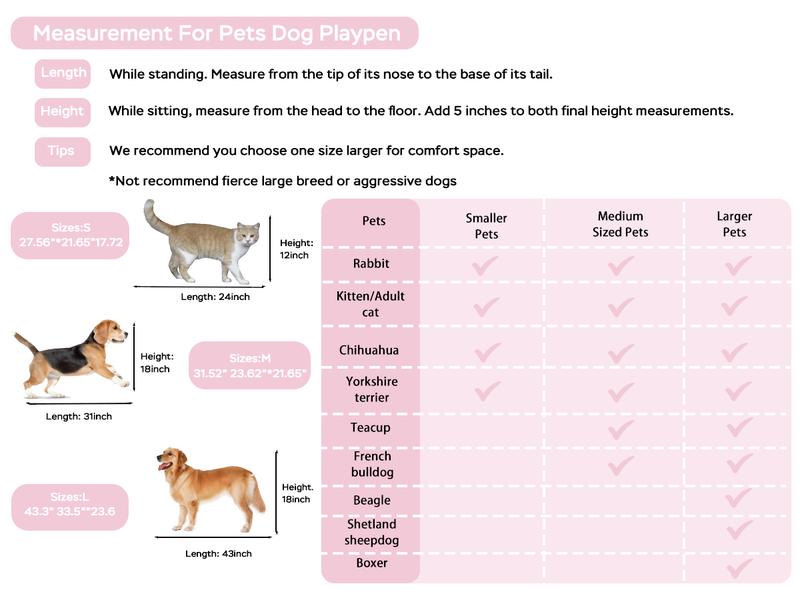 - Provides ample interior space for pets to stand, turn, or lie down freely. Suitable for small and medium-sized pets like dogs, cats, and rabbits. It can be used as a gaming area or a temporary resting area.